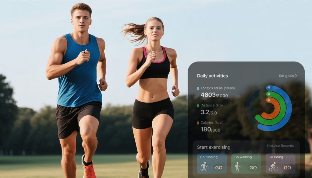 运动健身时,结合多项身体数据,综合判定健身效果,提供健身建议,包括日常活动智能记录、运动锻炼记录、健身质量评估 、锻炼时长 、锻炼量、锻炼频率、目标达成度等